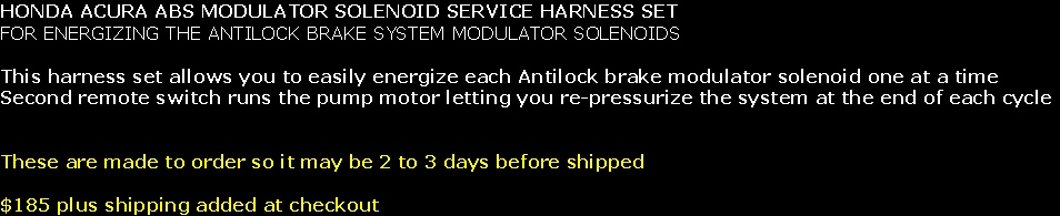 HONDA ACURA ABS MODULATOR SOLENOID SERVICE HARNESS SET