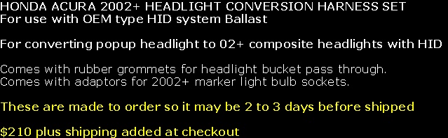 HONDA ACURA 2002+ HEADLIGHT CONVERSION HARNESS SET